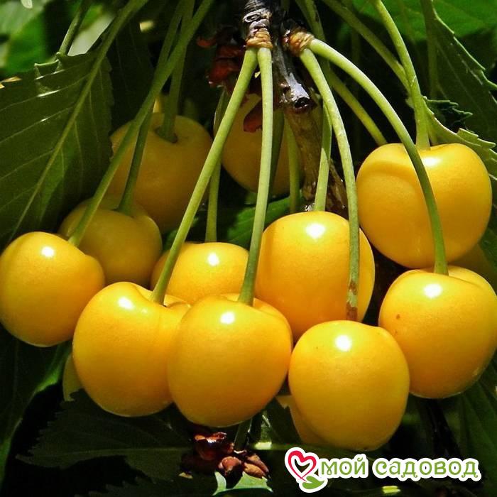 Черешне достаточно 3 поливов за вегетационный период. А если во время цветения деревья обработать медовым раствором, то это привлечет пчел. Чем лучше опыление, тем выше урожай. Что касается подкормок, то вносят их ранней весной. Для этого под каждое деревце наливают 60 – 80 г мочевины. Обрезку же проводят, пока не набухли почки. В первую очередь избавляются от сломанных, больных и засохших веток. Все срезы обрабатывают садовым варом. Стволы саженцев черешни нужно белить, чтобы предотвратить растрескивание коры и поражение насекомыми-вредителями.